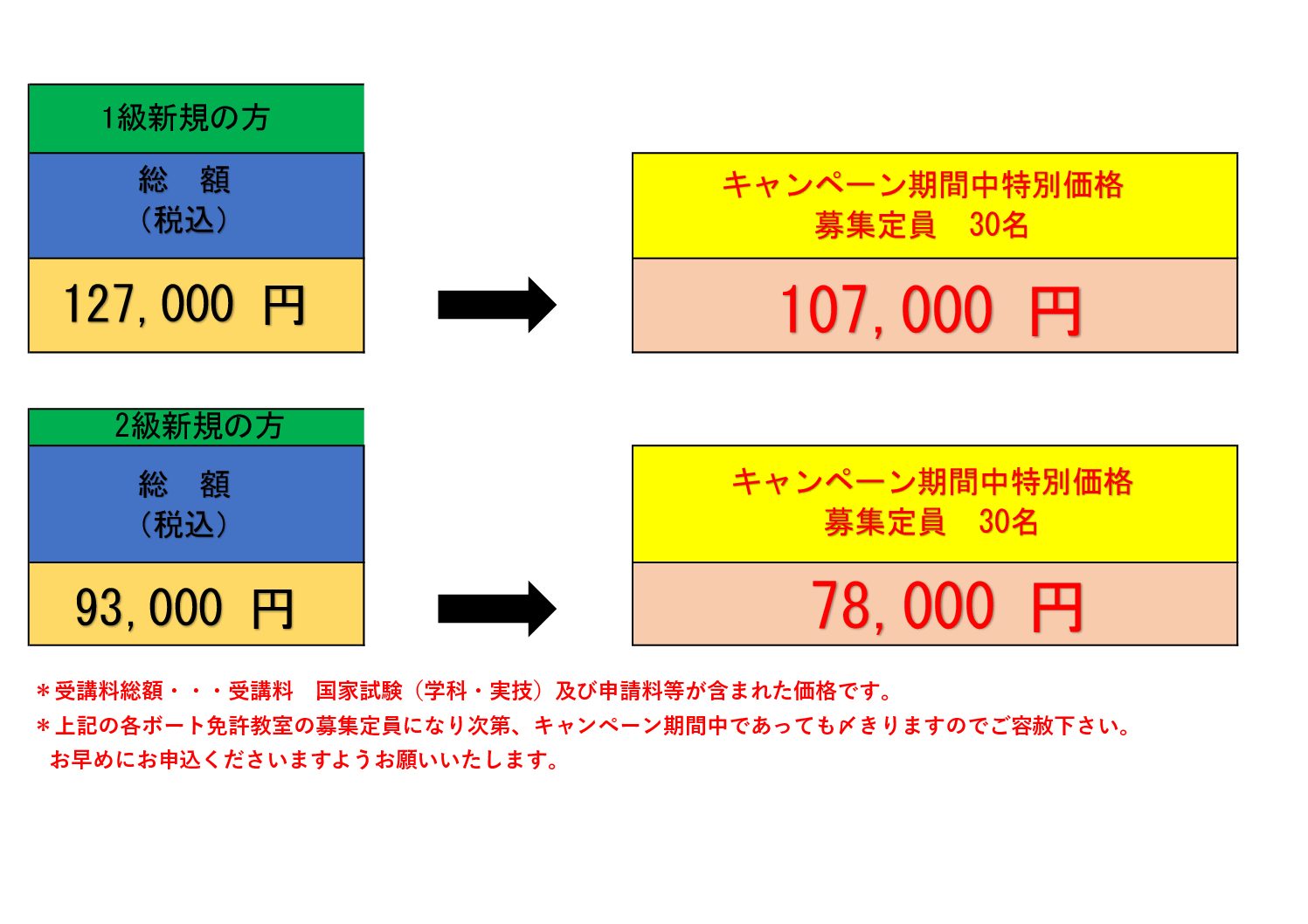*各ボート免許教室にはキャンペーン中の募集定員がありますので
